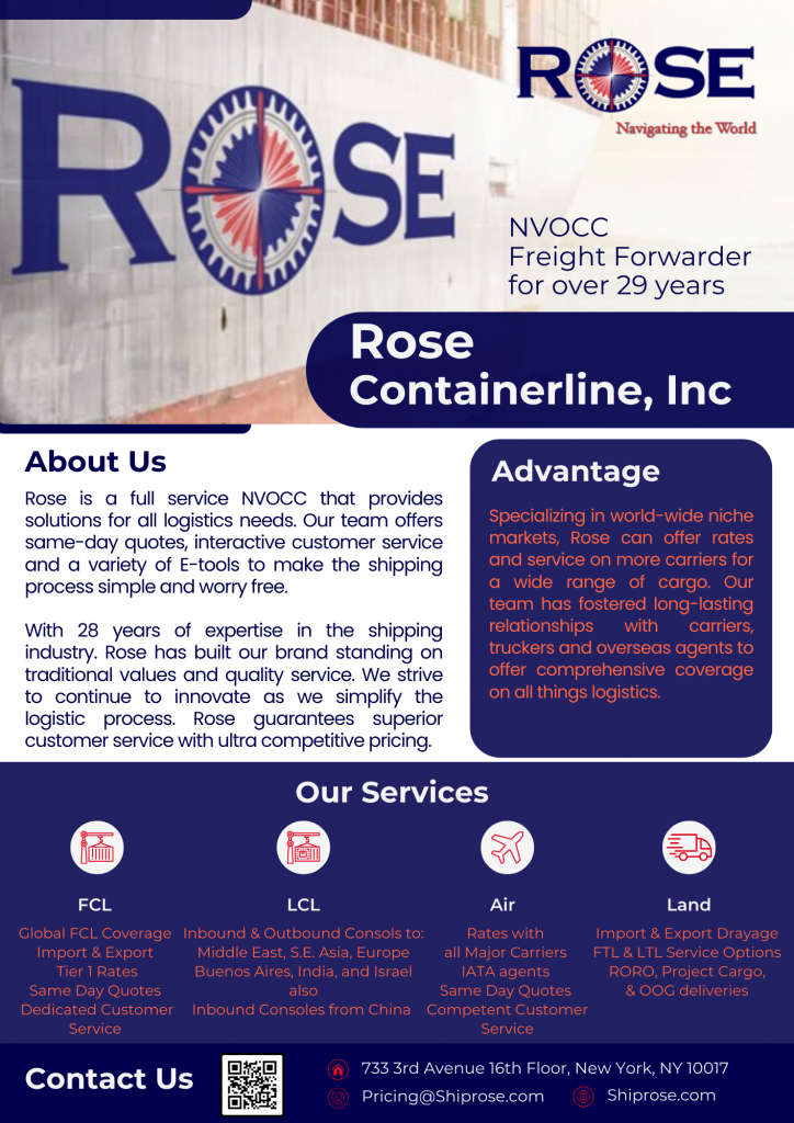Please see below company profile showing details of Rose Containerline.